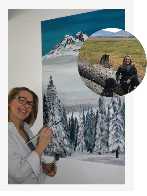 Nature and wildlife are the biggest inspirations in Silke's artwork. She loves to paint mountain landscapes and wild animals.